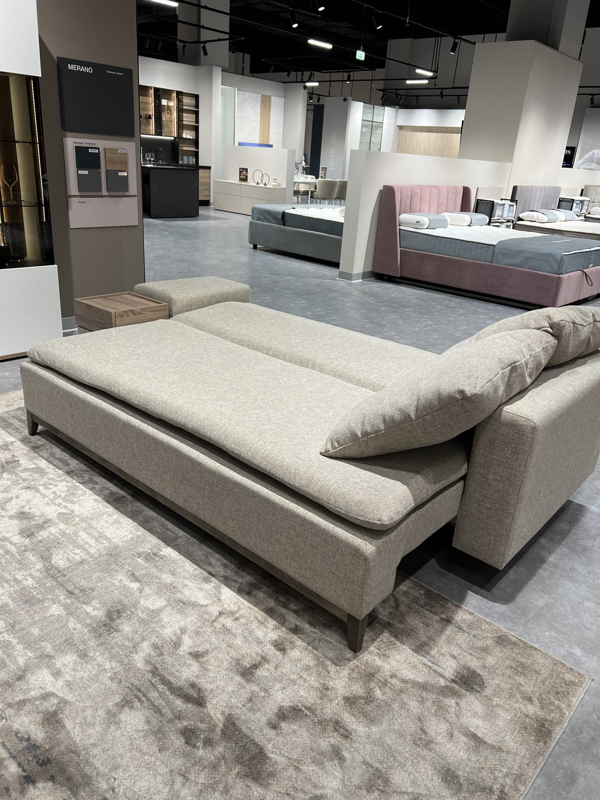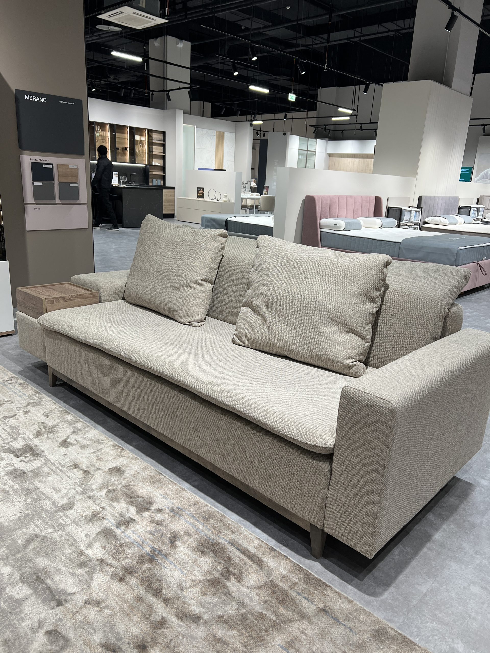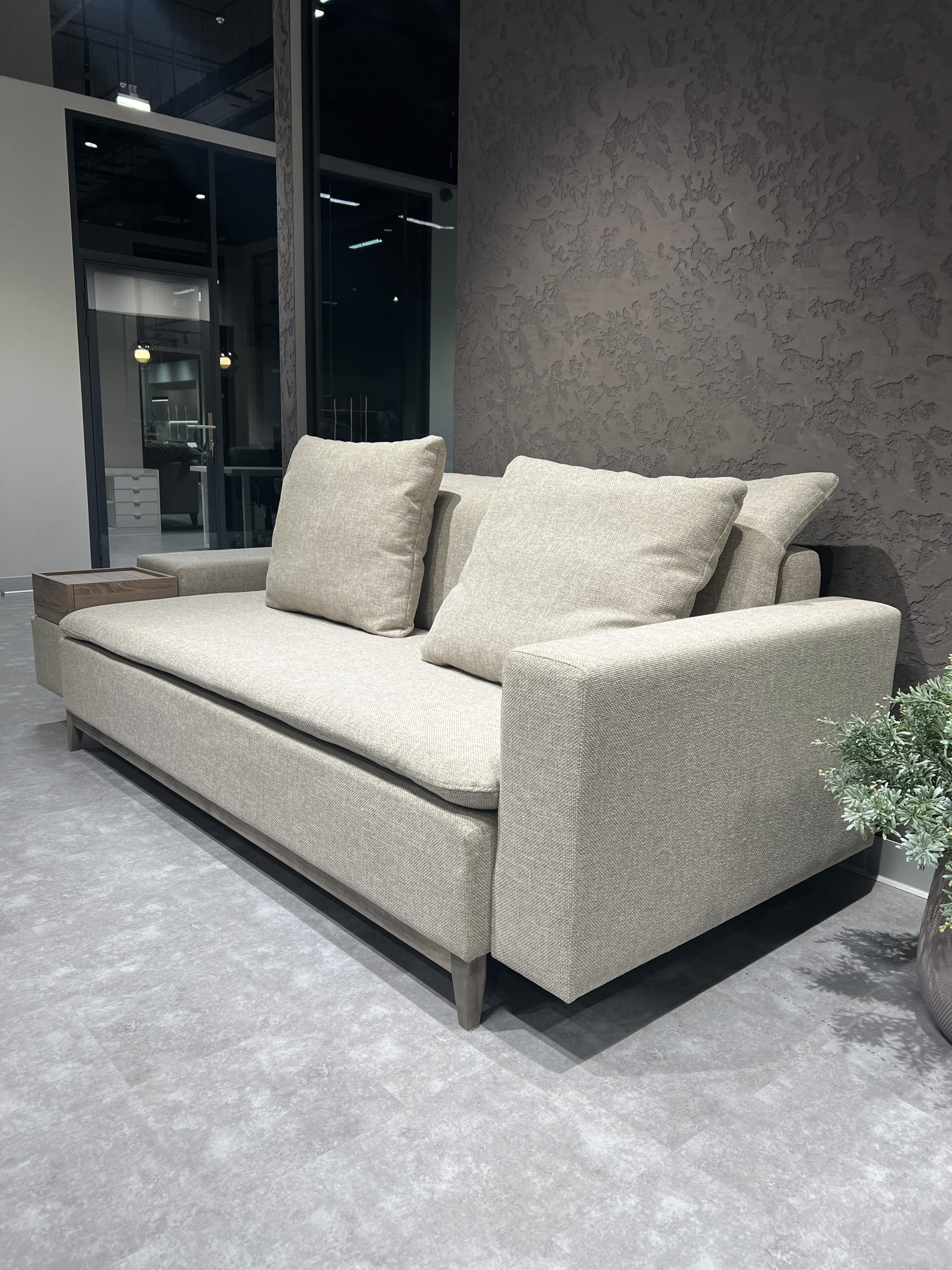 Диван Гретта. Выполнен из фанеры и массива березы. Собственное производство мягкой и корпусной мебели позволяет нам в изделии изменить как цвет ножек, так и тумбу на подлокотнике.